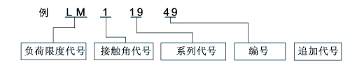 ISO355所规定的公制系列的圆锥滚子轴承中, 有不依据以往所使用的3xx尺寸系列的新尺寸。其中一部分记载于尺寸表。外圈宽度、外圈滚道的小端面直径及接触角与ISO的规定一致、内圈组件和外圈均具有*际互换性。其型号不同于以往的公制系列,构成如下。